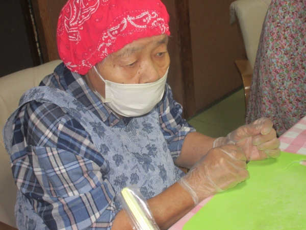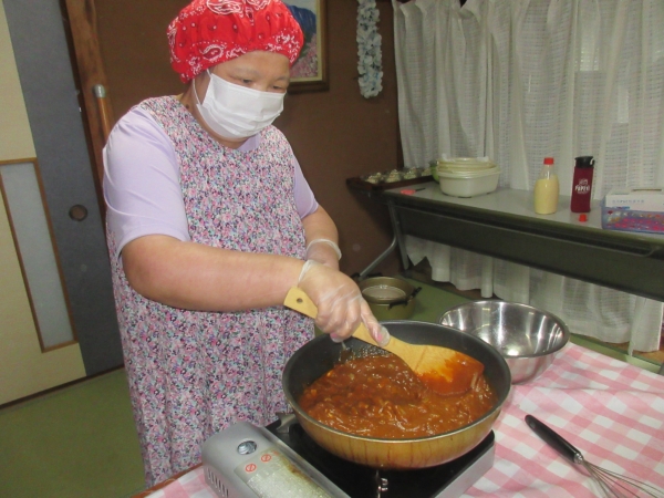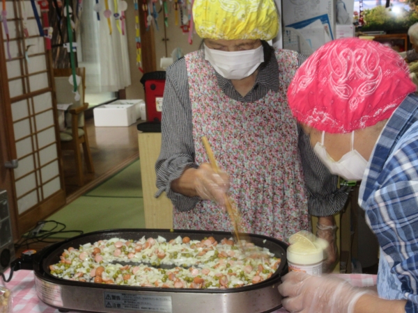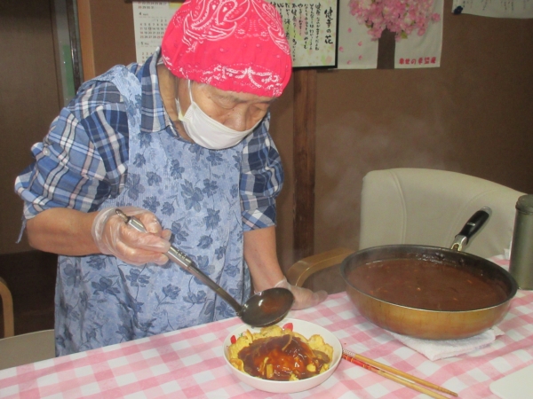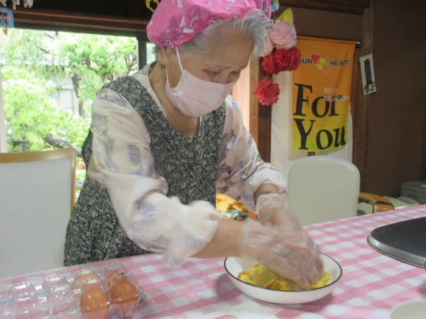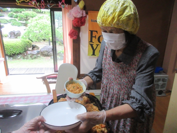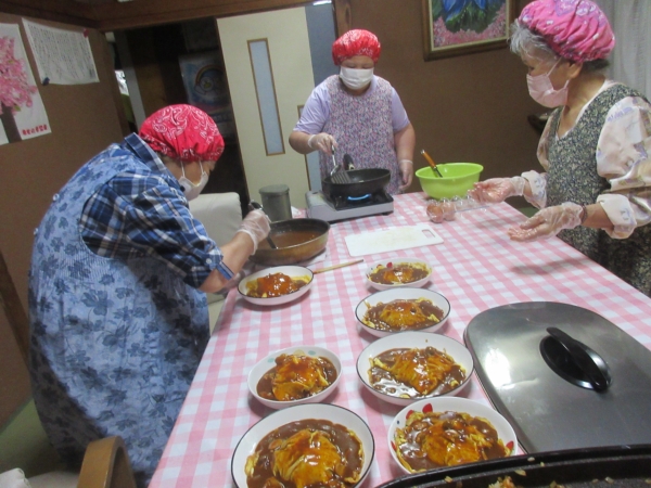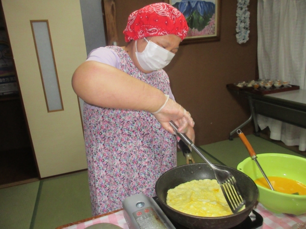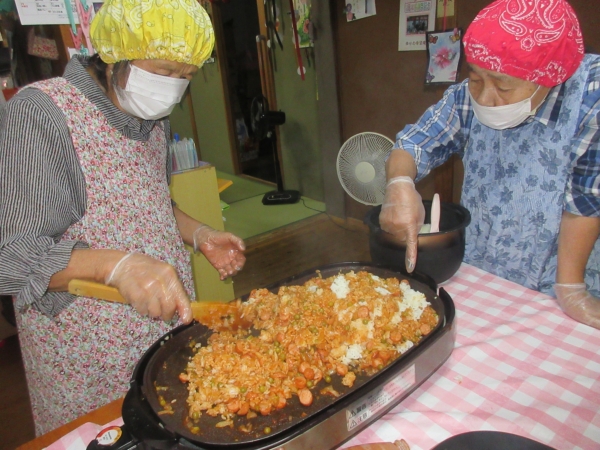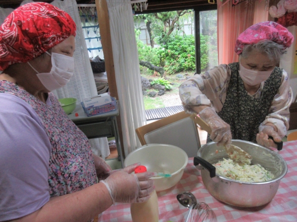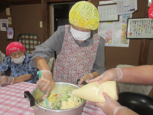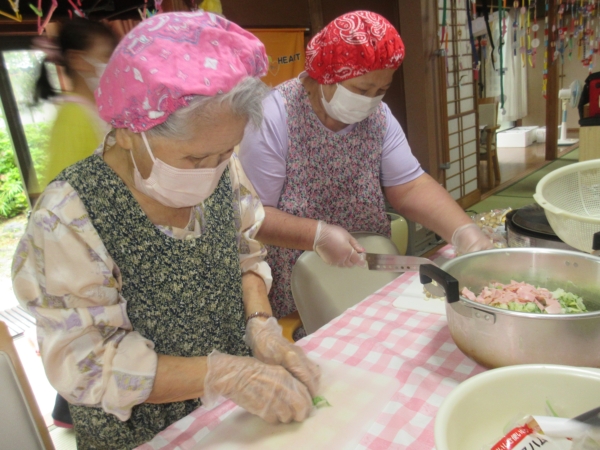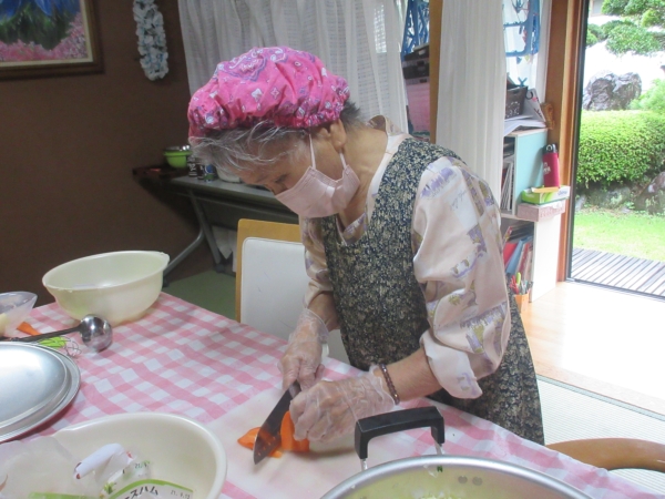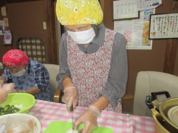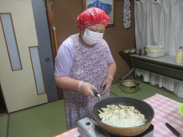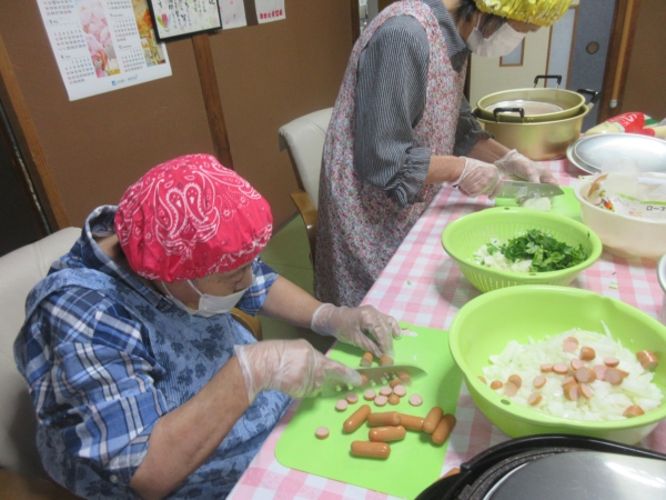 歌謡体操で身体をほぐしたら、本日のランチ作りに取り掛かります