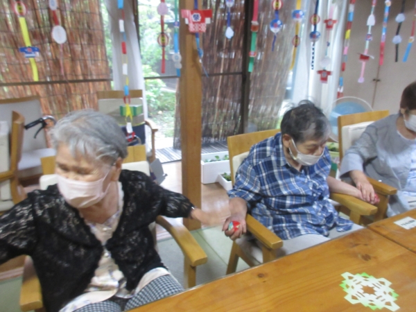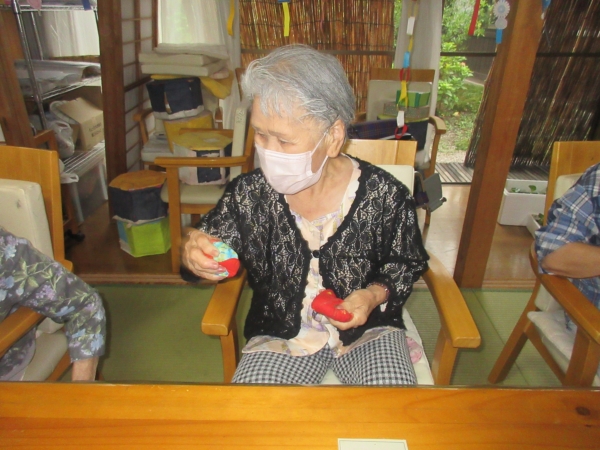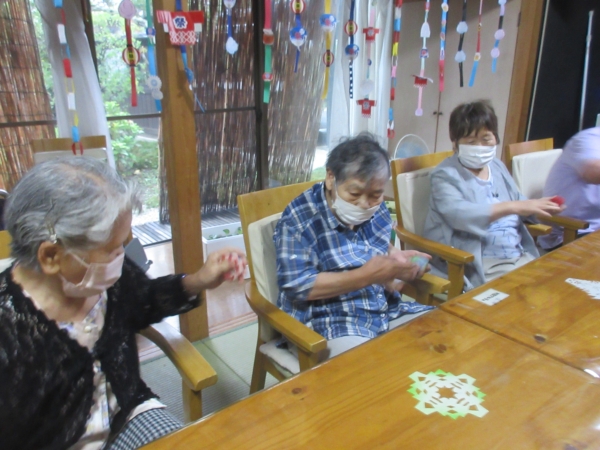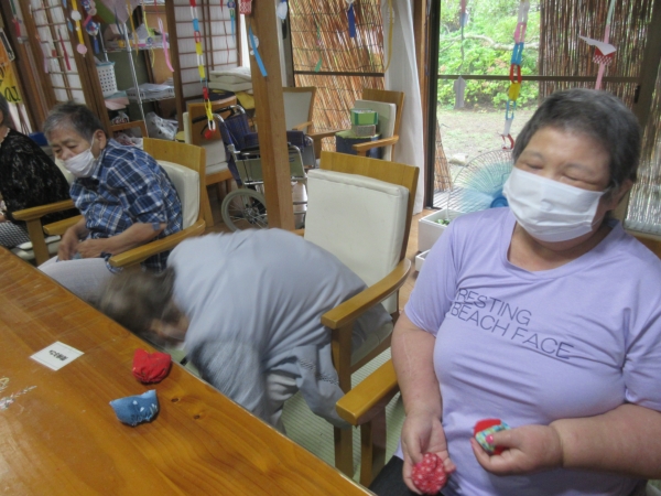 昔懐かしいお手玉を手にとり、楽しまれていました