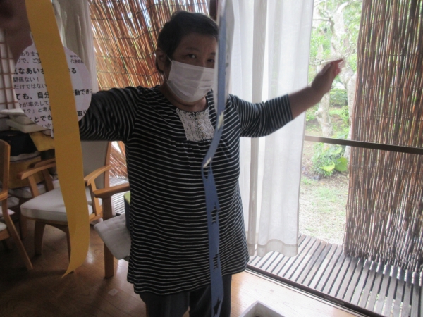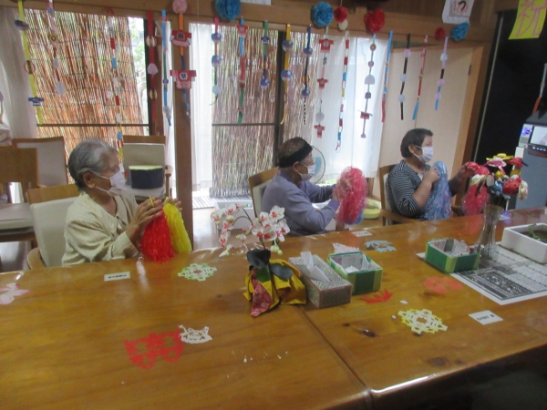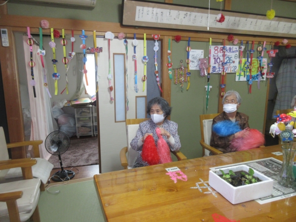 午後のレクは、ポンポンを使用したリズム体操です