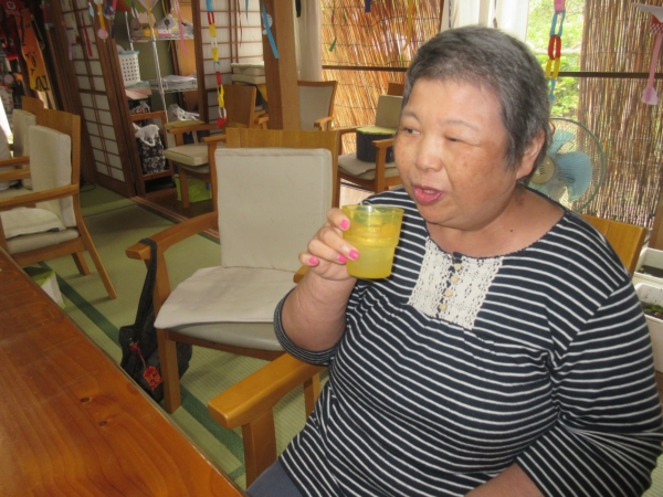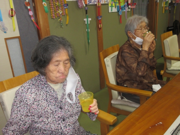 朝の体操の後は、水分補給で一休みします