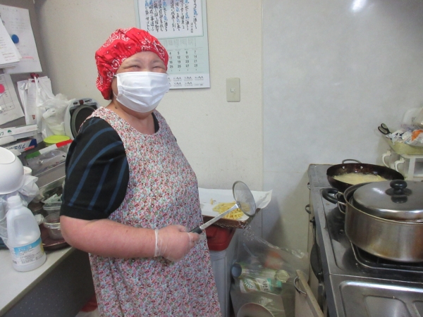 器への盛り付けが終わり、そろそろ出来上がりですうれしい顔