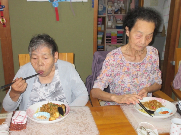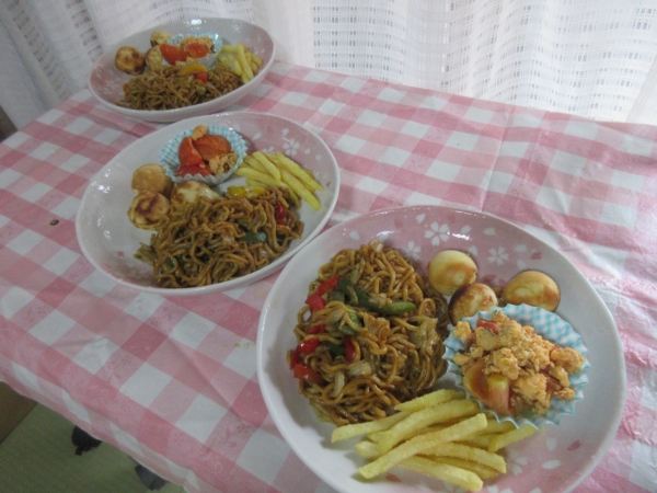 やきそばも出来上がりましたうれしい顔