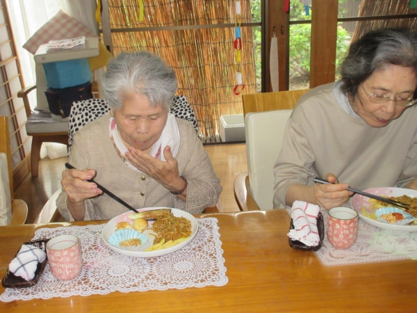 全員で、昼食を美味しく頂きました~うれしい顔