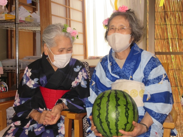 最後はスイカを持って、写真撮影しましたうまい! (顔)