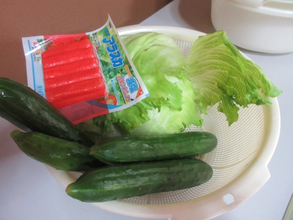 サラダのレタスは手でちぎります