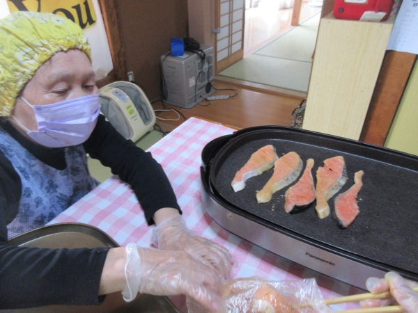 鮭を焼きます<゜)))彡