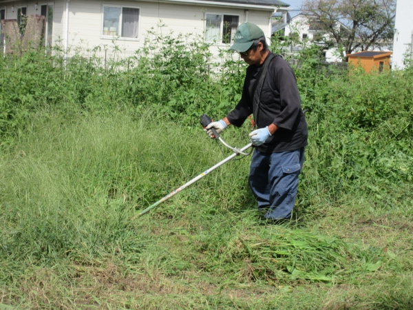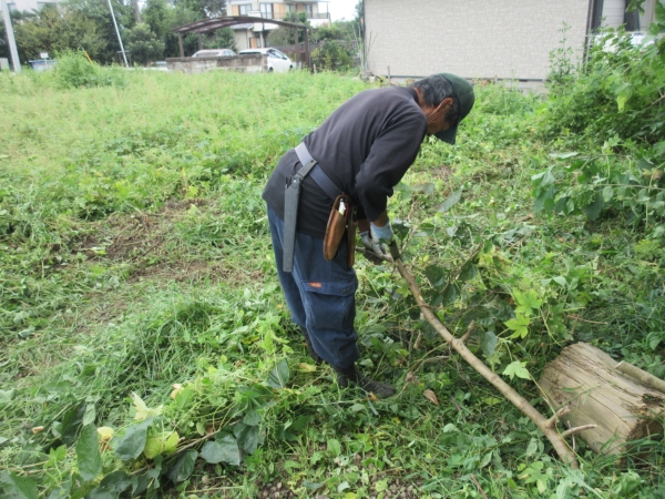 庭師さんが朝から庵のまわりの草を綺麗に除去して下さっています