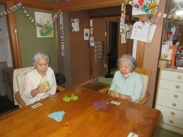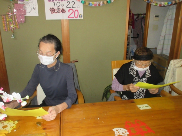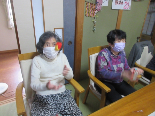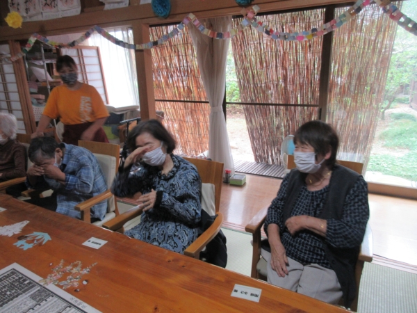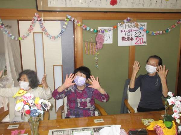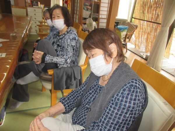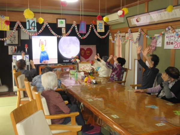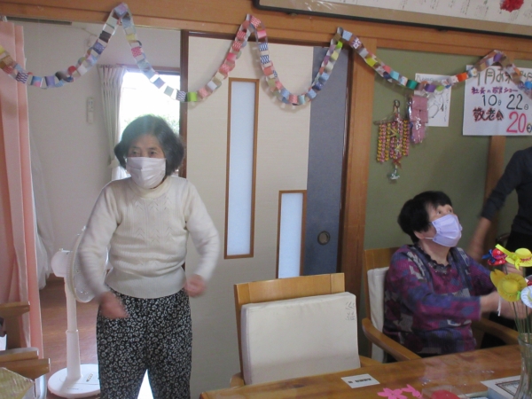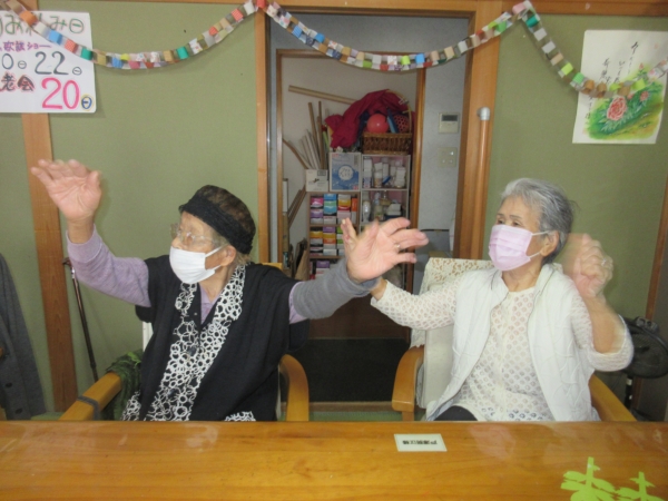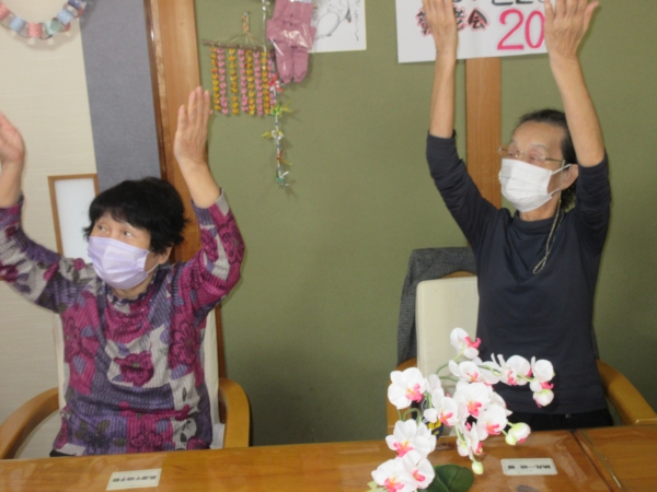 秋の歌「ふるさと」で発声練習をしたら、朝の歌謡体操の時間です