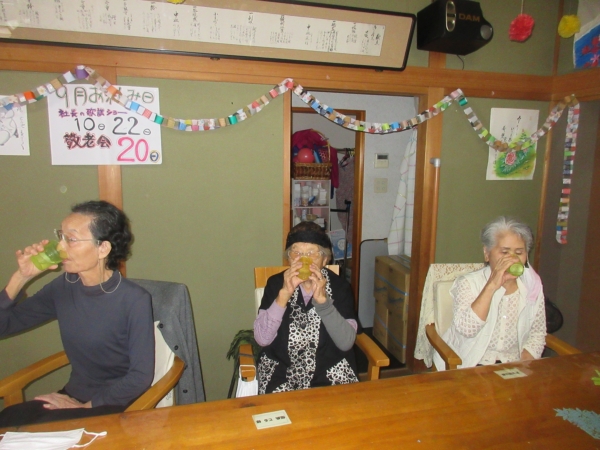 しっかり体操した後は、冷たい梅ジュースで「ほっ」と一息
