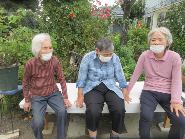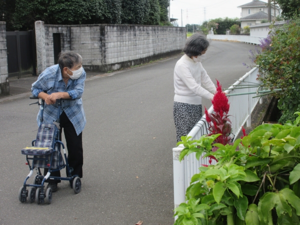 可愛いお花に癒されるね~と母は立ち止まってお花に見惚れています