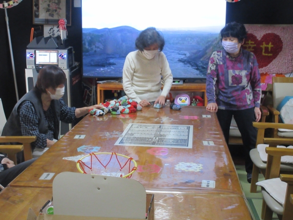 入りそうで入らない簡単そうで難しいお手玉入れでした