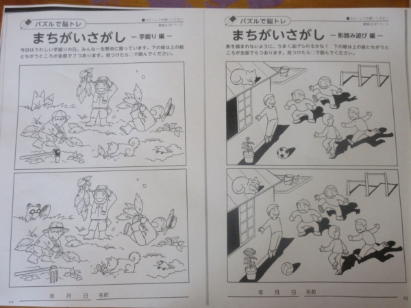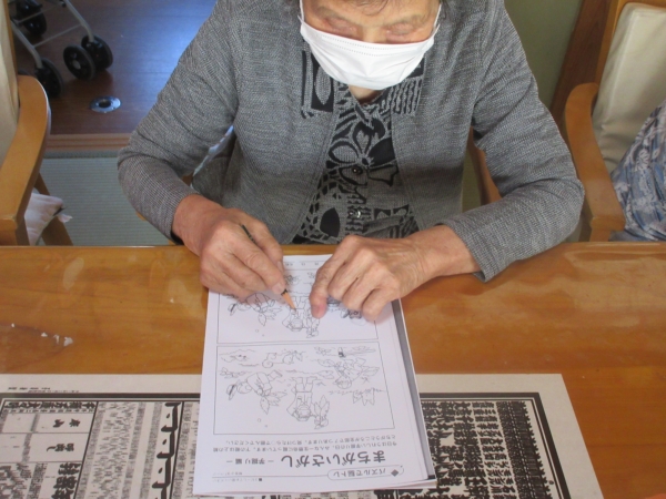それでは午後のレク、パズル脳トレの間違い探しを行います