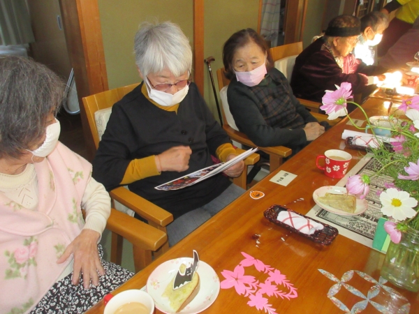 おやつを頂きながら、写真をお隣同士で眺めている方もいました