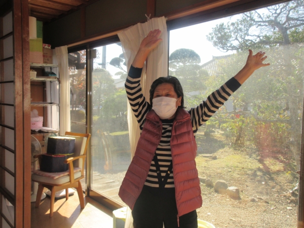 体操が大好きな母は、大きく手を広げ身体全体で体操を行います