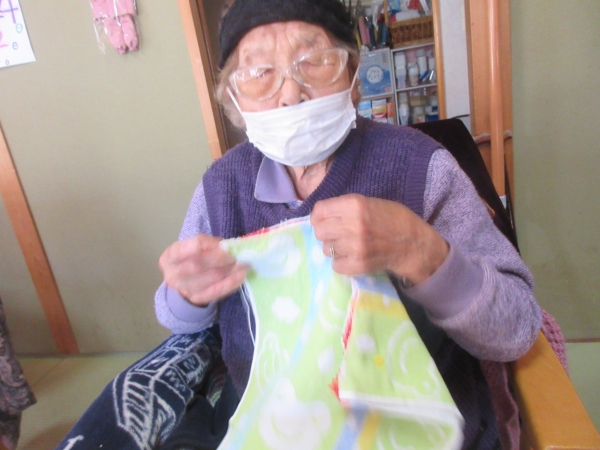 『熊さん柄もカワイイよ』と母は薄茶色のタオルを選びました