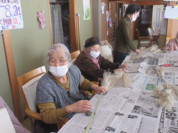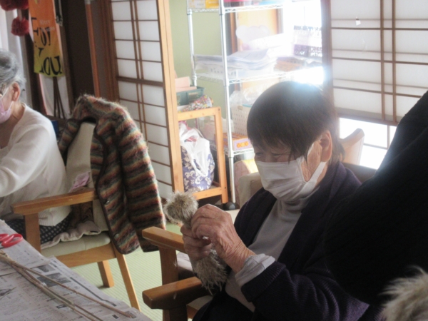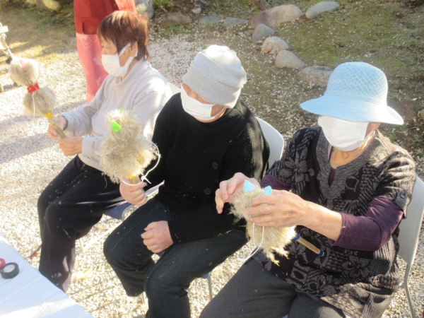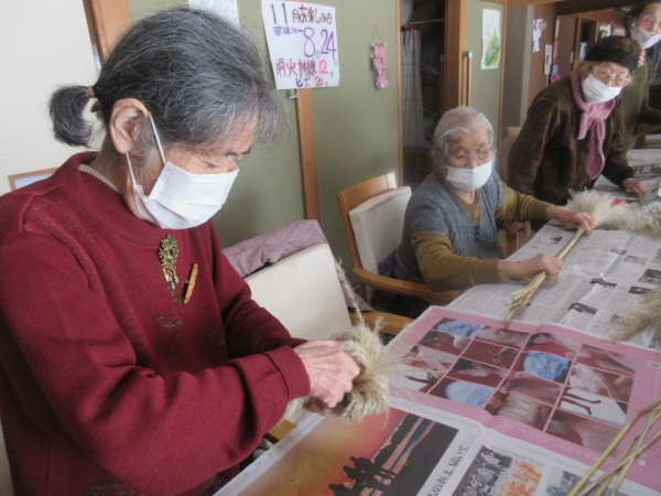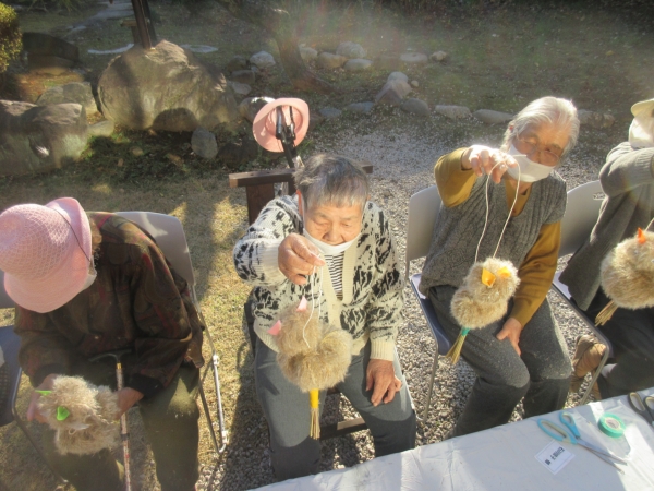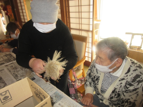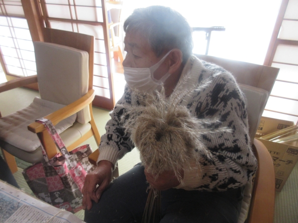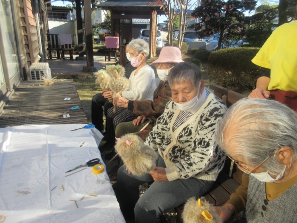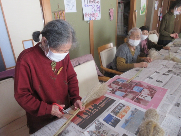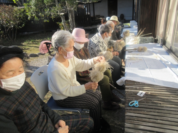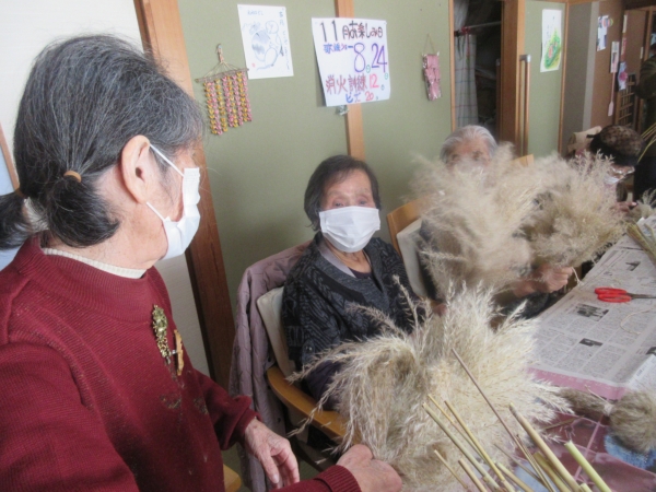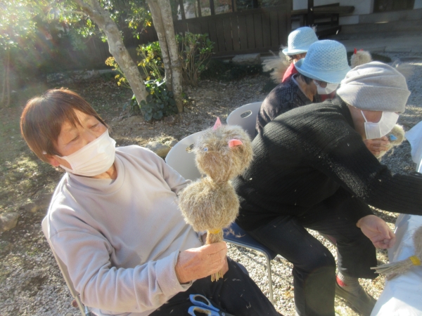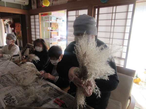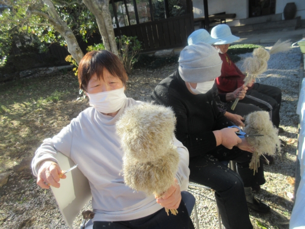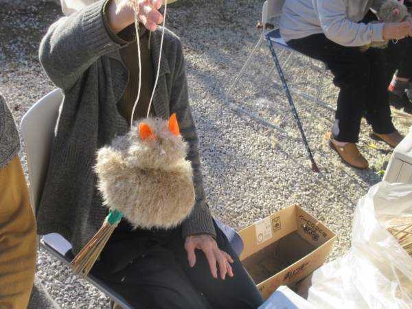 午後は、屋外に出て出来上がったススキのフクロウをカットしていきます