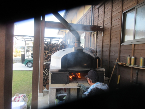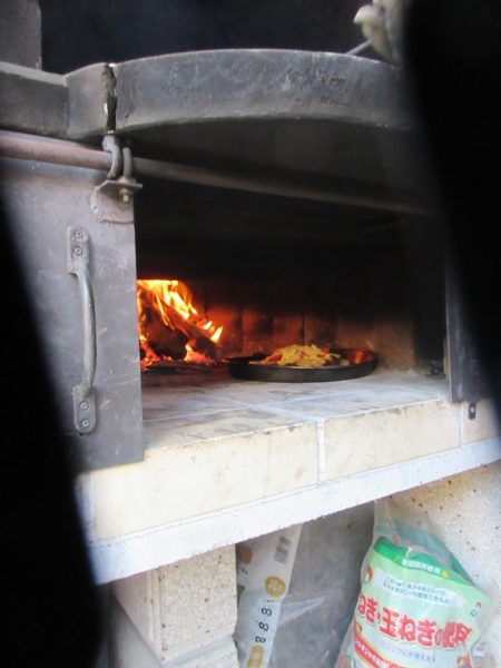 これから、こちらの窯と薪で、ピザを焼いてもらい、作り立てのピザ