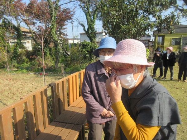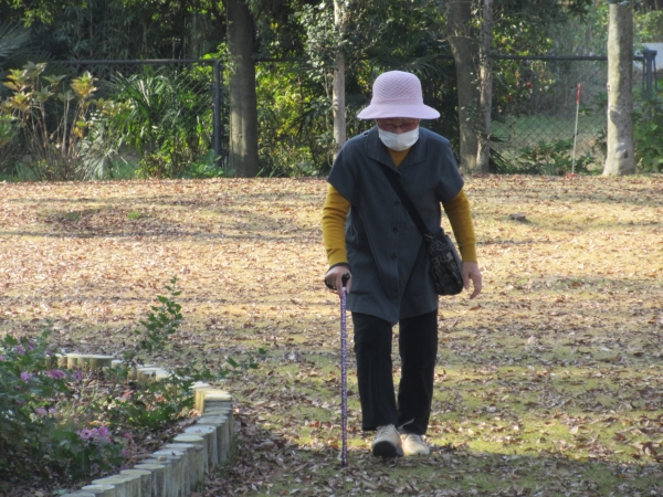 杖をついて歩く方も少し遅れて、目的地の池に到着しました
