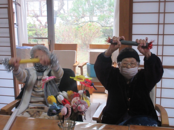 最後は棒で肩たたきなどをしてリフレッシュしました