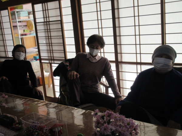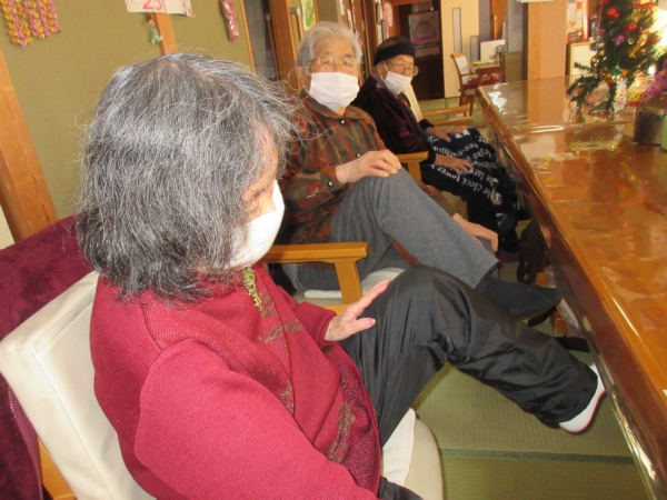 座位の状態で、しっかりと両足を動かして、両足の筋力強化を