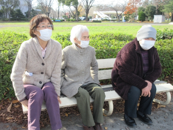 公園のベンチで少し休んだ後、手遊びをしましたうまい! (顔)
