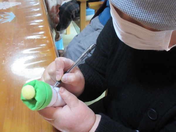 頭のボンボンはスタッフにて、グルーガンで取り付けました