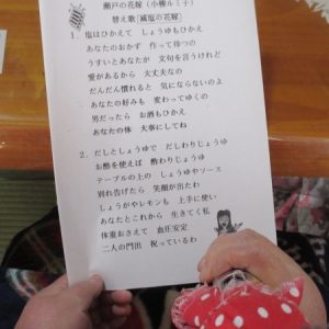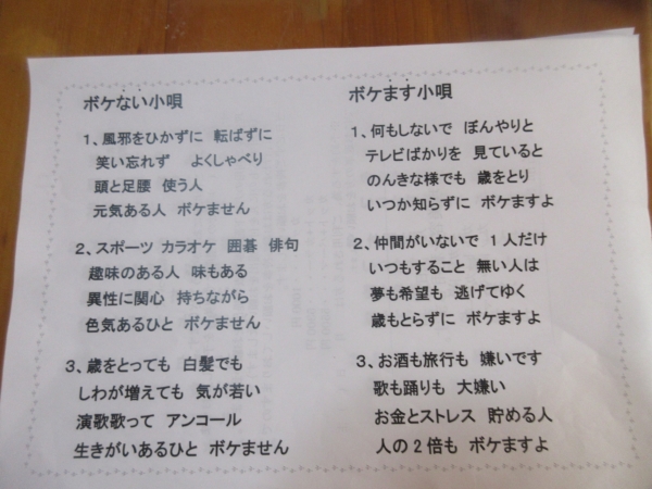『お座敷小唄』の替え歌で、ボケます小唄、ボケない小唄をを歌い、