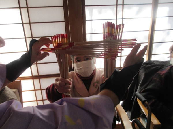 南京玉すだれが終わり、皆様道具を触らせてもらいました