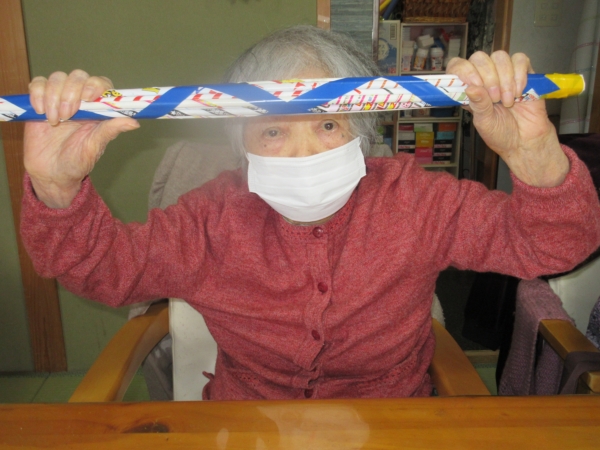 棒をお渡しすると、とても良い笑顔を見せてくれ、この後一緒に棒体操を