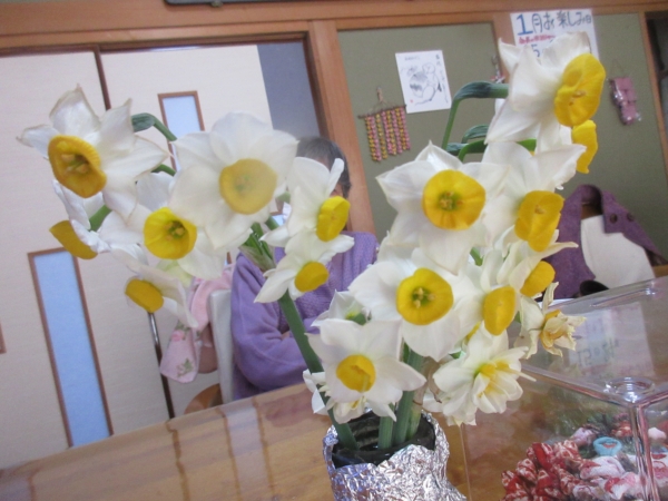 お庭に咲いたお花を摘んでテーブルに飾り、お花の香りを楽んで頂きました