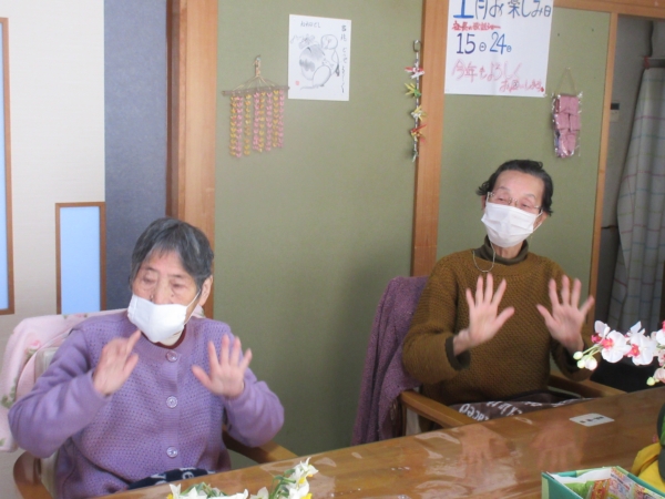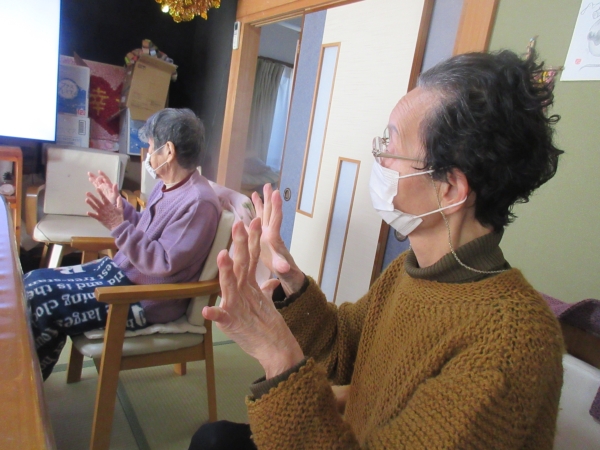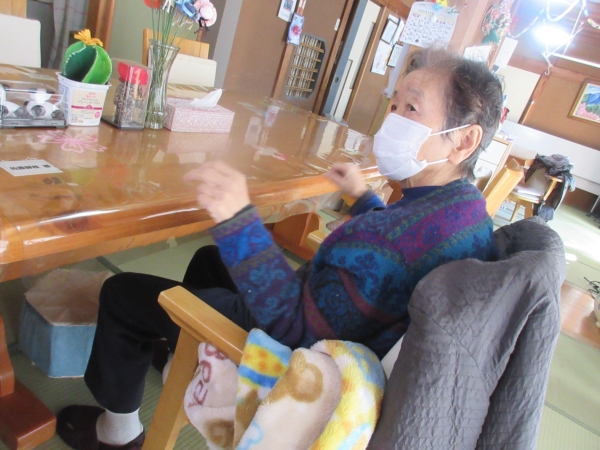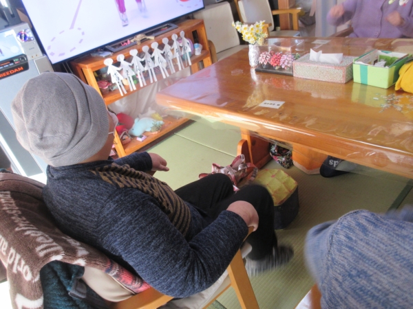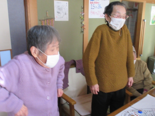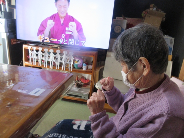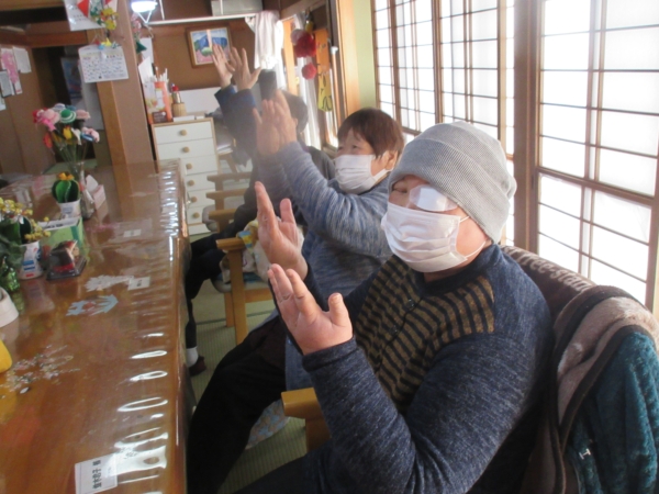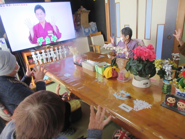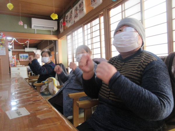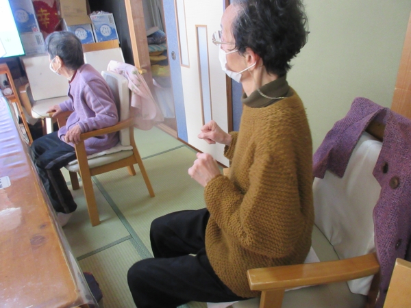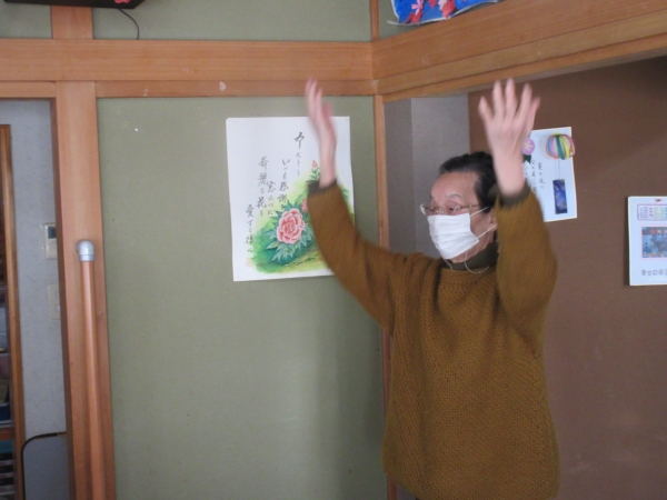 歌謡体操に続き、午前のレクの筋力UP体操を行います