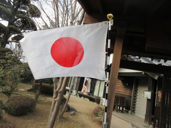 庭先に掲げた国旗もものの見事に開き成人の日の門出を
