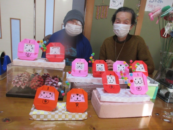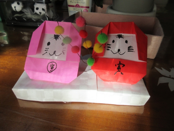 折り上がったら、今年の干支の寅🐯の顔を描いて行きますよ