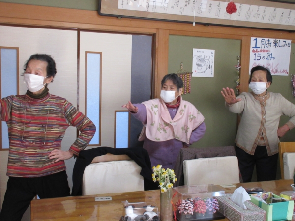 朝会では、本日の日付確認、予定確認をした後、歌謡体操で
