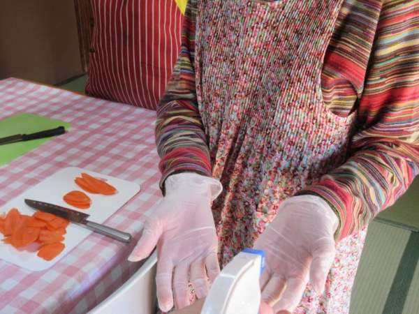 感染症や食中毒防止の為、アルコール消毒を行いますムード