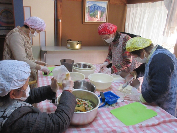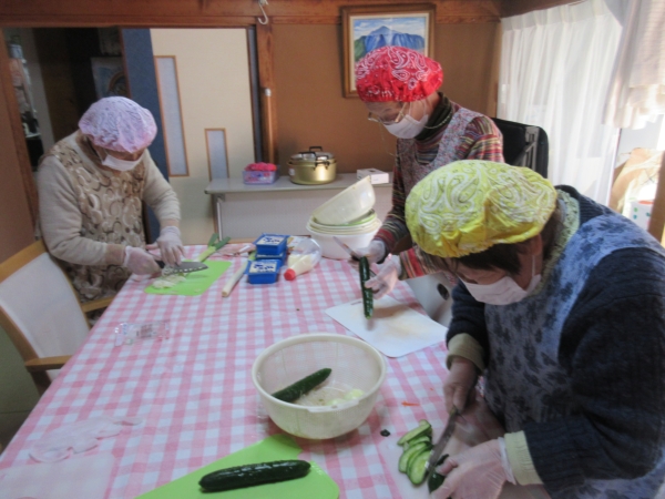 皆様で、協力して食材をカットしていきます美容院 (鋏)