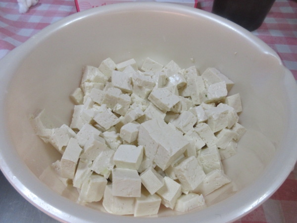麻婆豆腐用に豆腐を切ってもらいました美容院 (鋏)