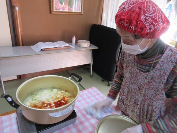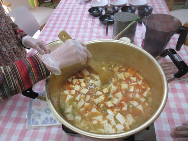 麻婆豆腐を作る為、火を通していきますいい気分 (温泉)