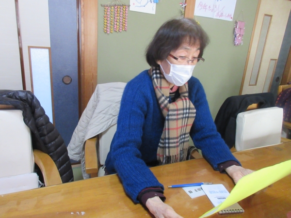 幸せのスーパーマンの説明を一所懸命に聞く幸せの幸望庵の母たちです