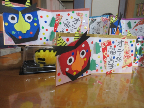 皆様、鬼の方にもシールを貼りつけて下さいました