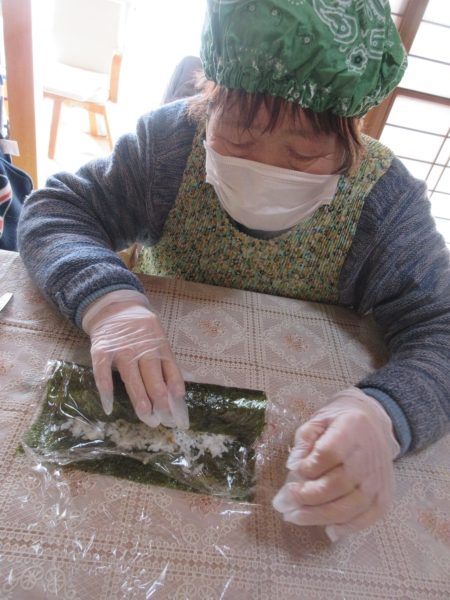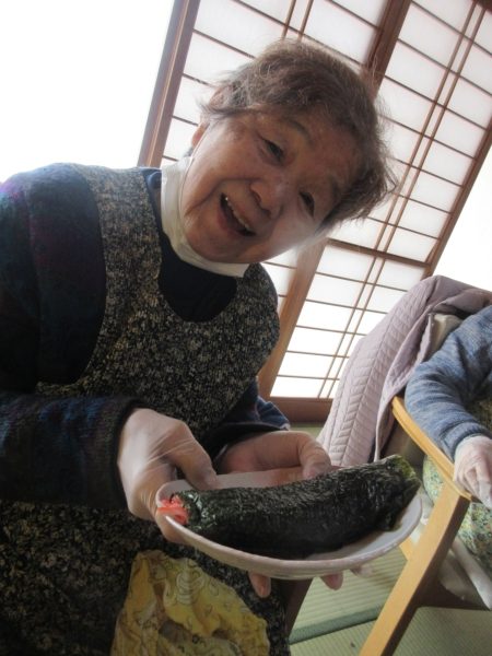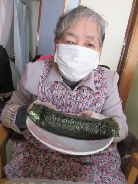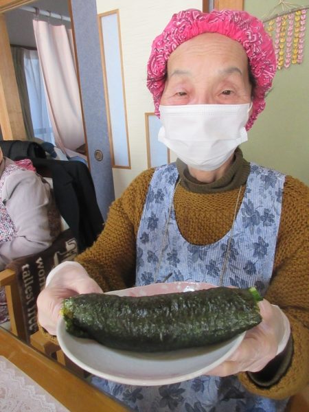 皆さん、ご自分の作品の恵方巻を持ってご満悦
