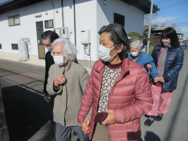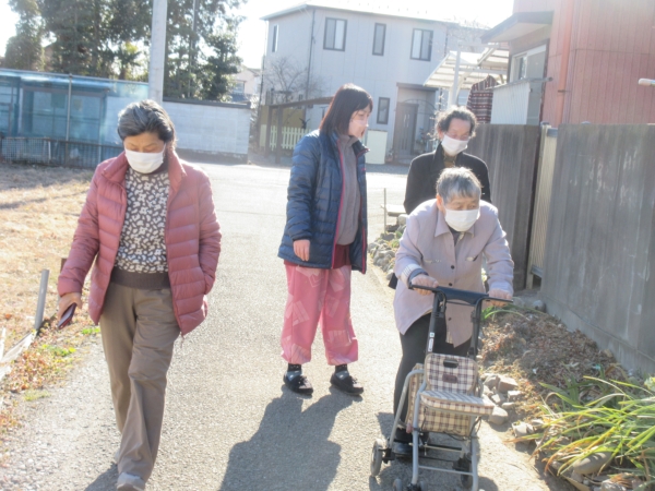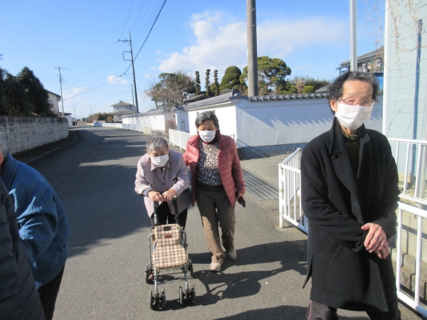 歩行が不安定な方は、シルバーカーを押していきます