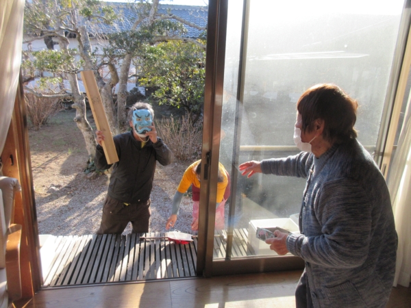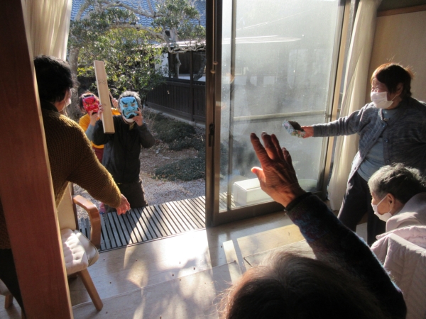 「鬼は外・福は内」と言いながら」豆まきをします