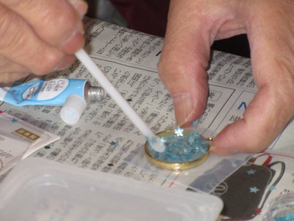 UVライトでレジン液が十分に固まったら、はみ出た部分を