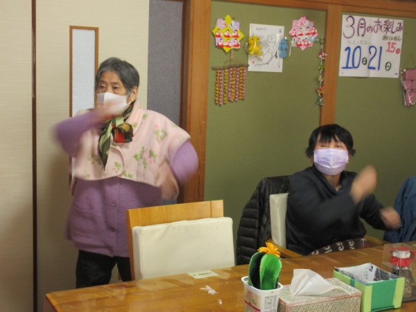 幸せの幸望庵では、一日3回歌謡体操で身体を動かす時間を設けていますうまい! (顔)