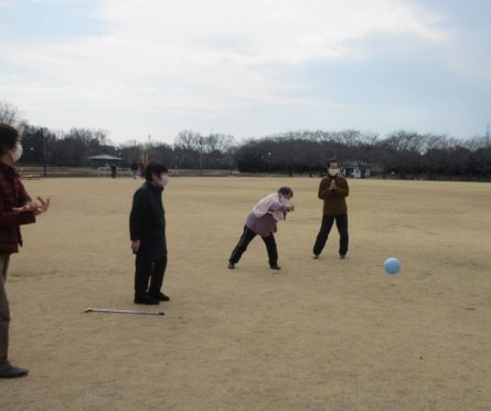 座位の方は、ベンチに腰掛けたままボールを投げたり、キャッチバスケットボール