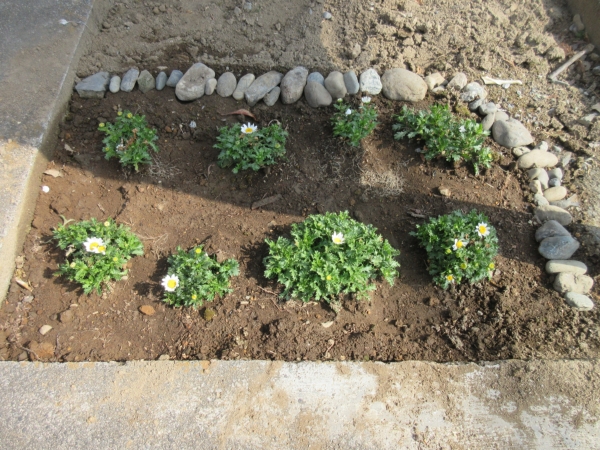 駐車場脇の梅の木の下に小さな花壇ができました