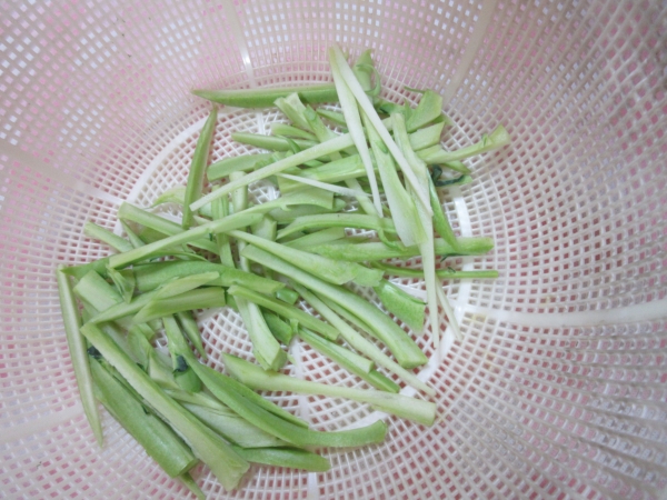 ブロッコリーの芯は、固い部分を取り除き千切りにしていきます