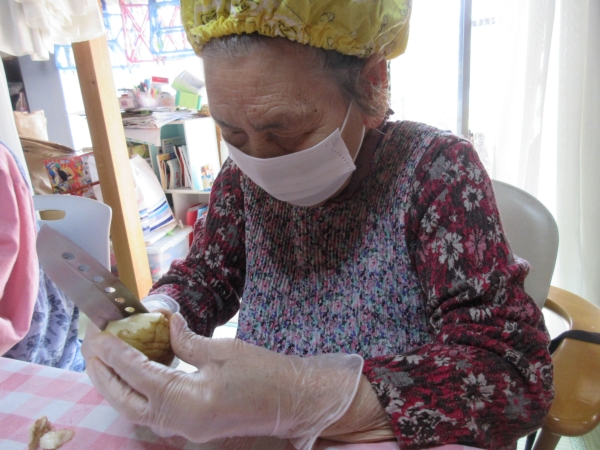 じゃが芋の皮をむく母は手慣れていますね