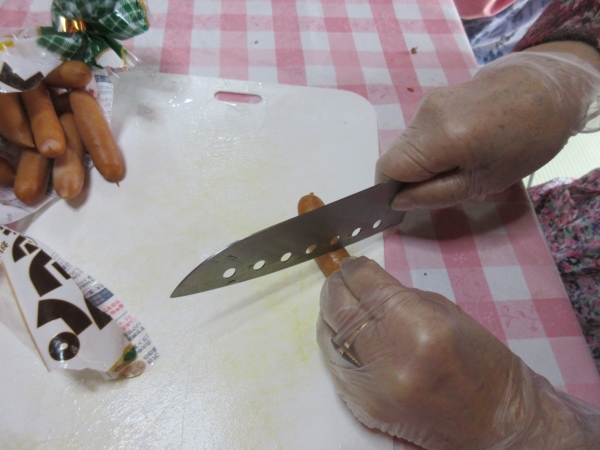 ウインナーは火が通りやすくなるよう切れ目を入れ